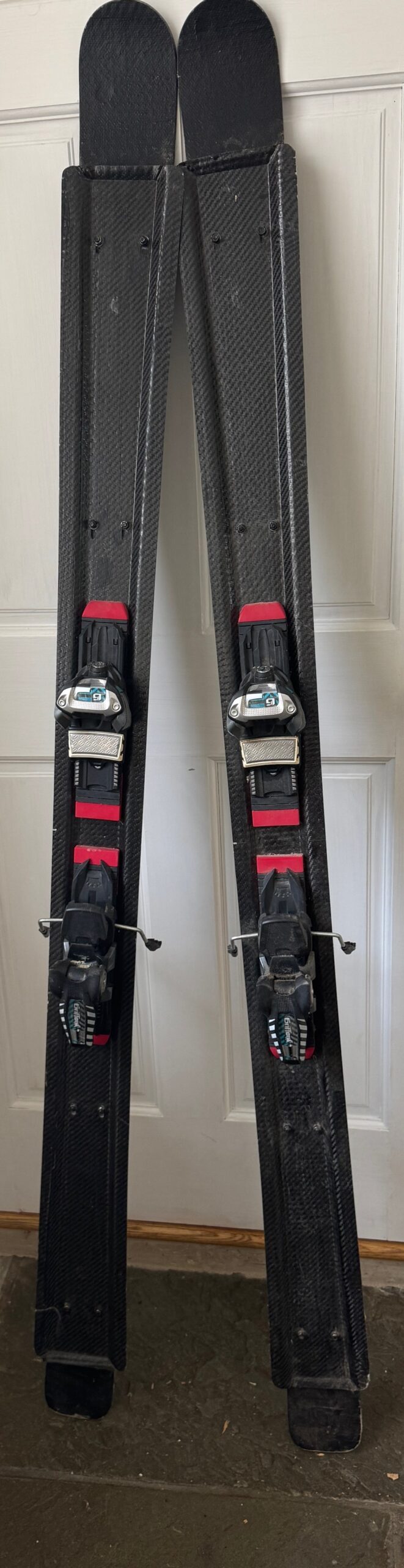 CF runners- the oblong slots on the CF runners are designed to allow the ski to flex in a turn. Behind the binding (tail) the oblong slots should face the opposite direction. The ski bends from the binding which is located in the center of the ski. Everything in front of that flex point moves in one direction, everything behind that flex point moves in the opposite direction. In trying to flex the ski tail, it is visible that the bolts through the ski get hung up on the CF slot. I loosened the nuts on the tail section to try to get more available movement out of the ski, however the end point in the oblong slot was not allowing any additional movement of the ski tail.